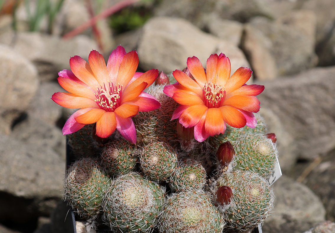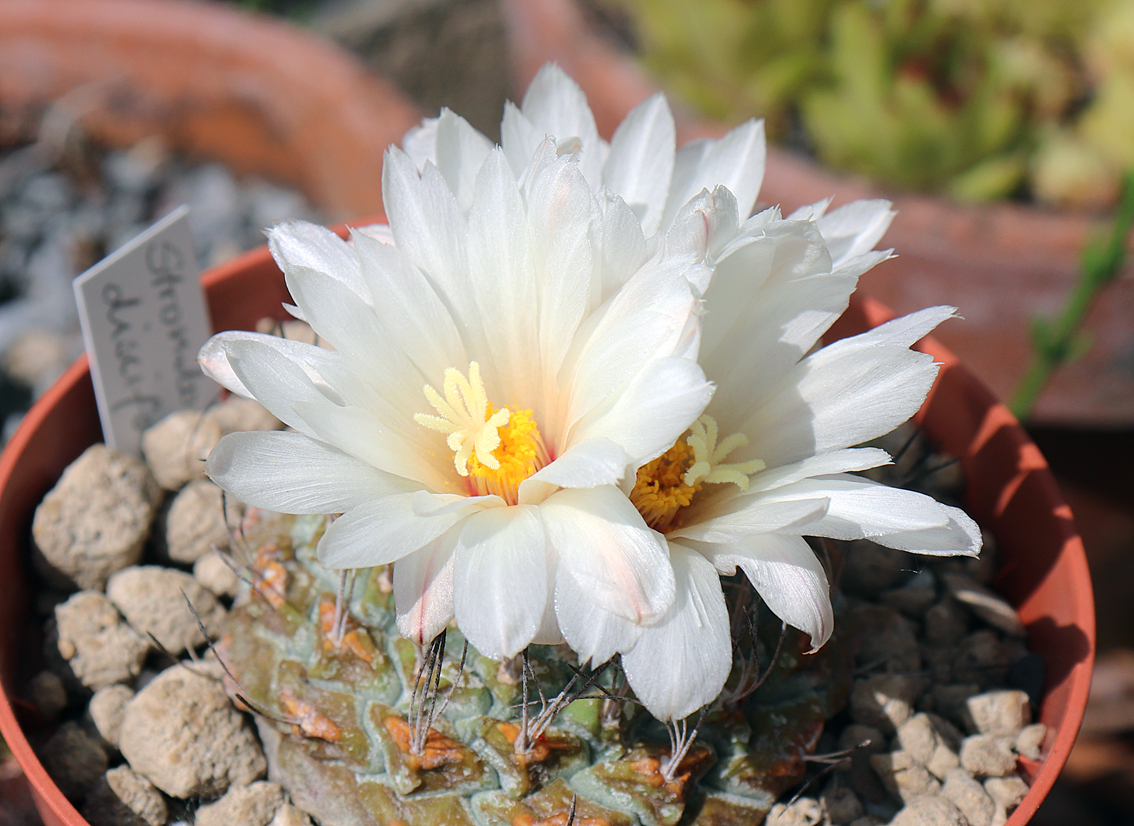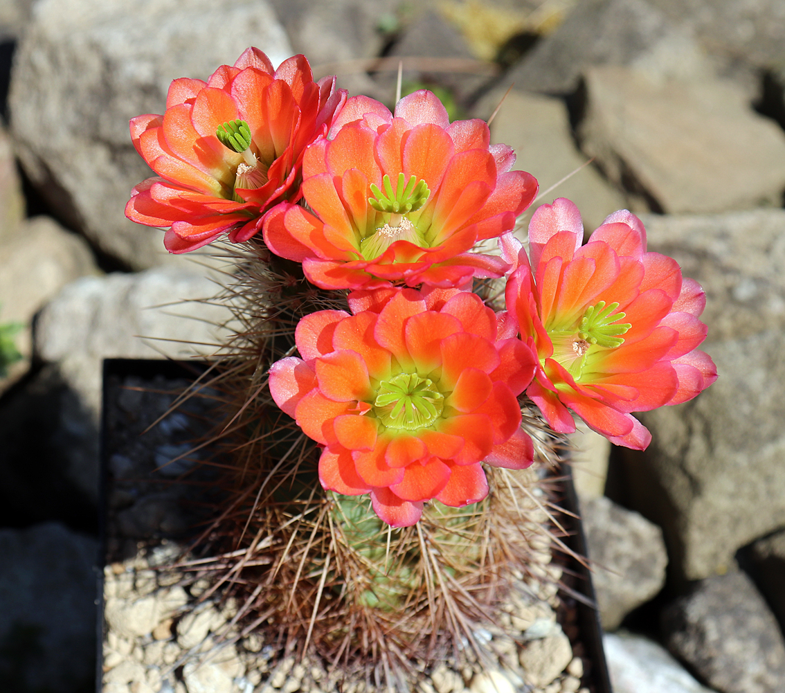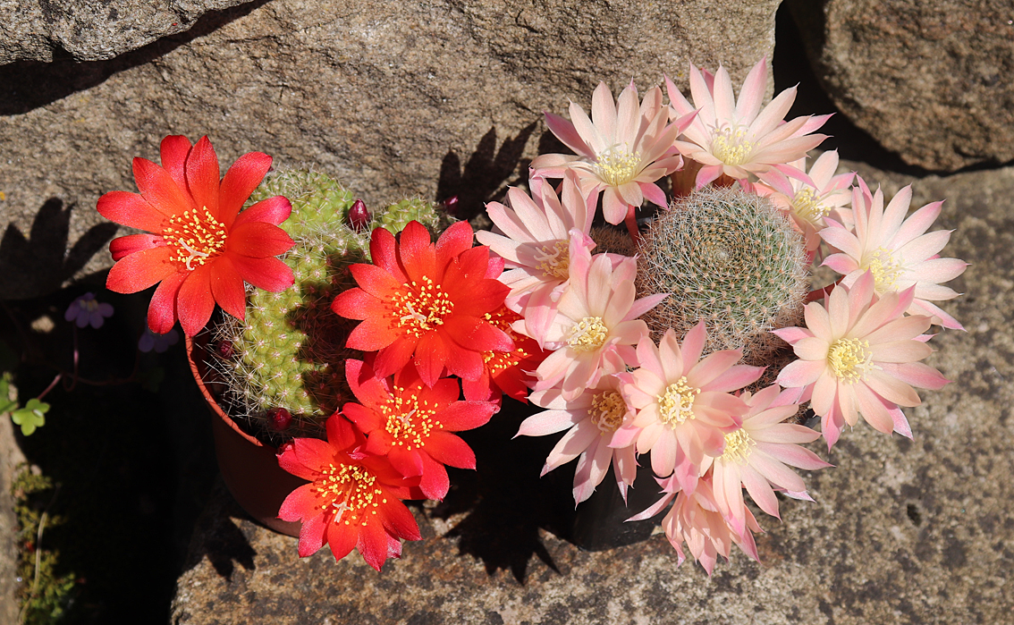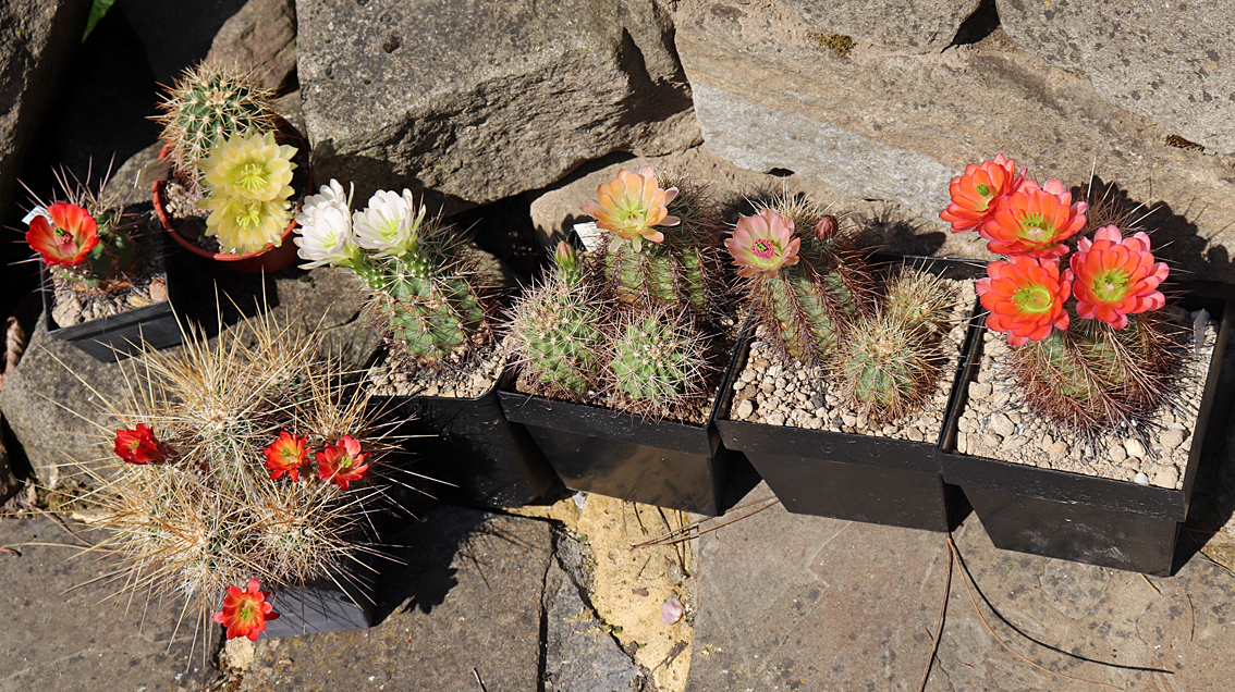 Ohne den Pflanztopf konnte ich das Foto vor einem strahlend blauen Himmel machen. Ihr wisst schon, Kakteen blühen auch ohne Substrat an den Wurzeln. Mittlerweile hat sich die Pflanze gut in ihrem neuen Topf eingerichtet. Das gibt wieder schöne Blüten - 2026.