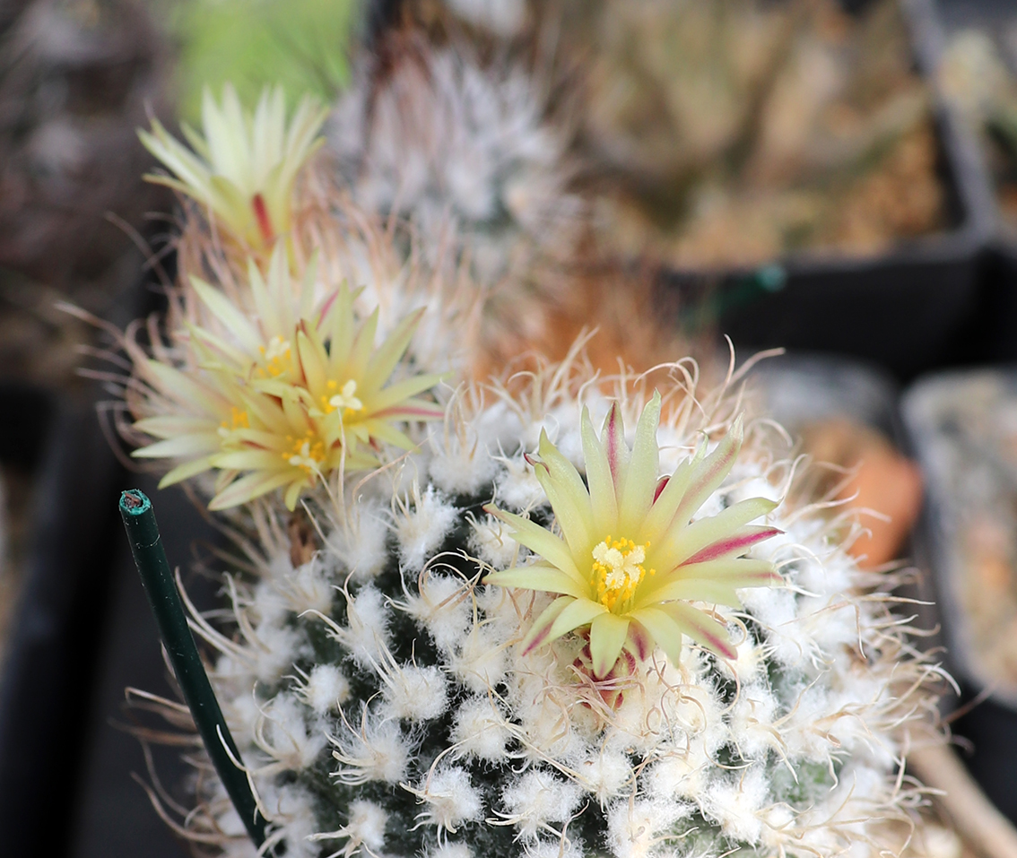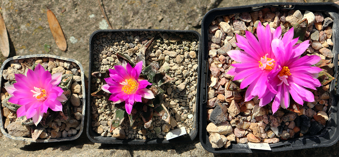 Die Turbinicarpen gehören zu den frühesten Blühern der Saison, aber auch im Spätsommer zeigen sie ihren Flor. Im Grunde blühen die kleinen Racker von April bis Oktober durch. Es genügt immer einmal ein Schlückchen Wasser, schon schieben sie neue Knospen. Da macht es doch nichts, dass die Blüten klein sind.