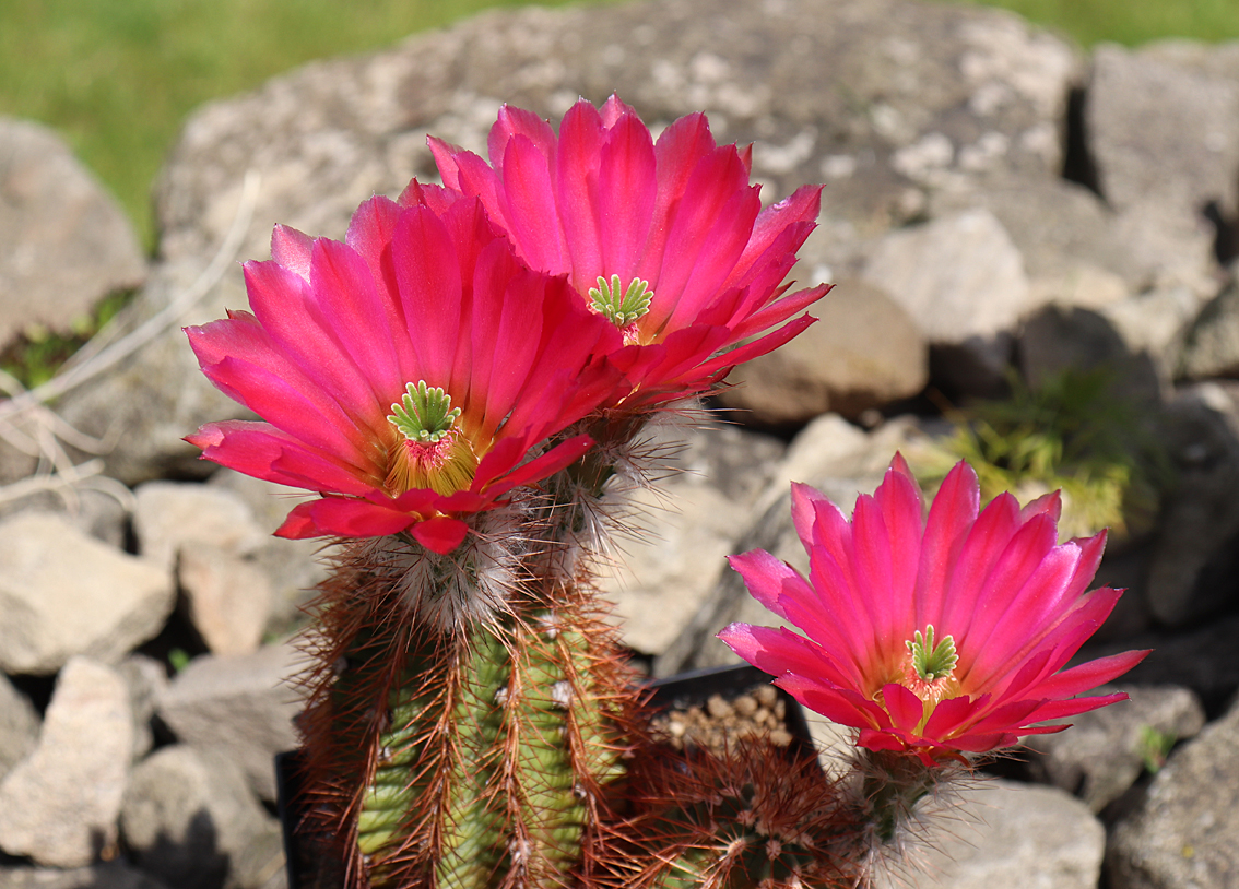 Echinocereen mit richtig großen Blüten erblühen eher im Frühsommer. So auch diese Hybride mit wunderschöner Färbung. Ich hoffe, die Pflanze bleibt mir noch lang erhalten und begeistert mich noch viele Jahre.