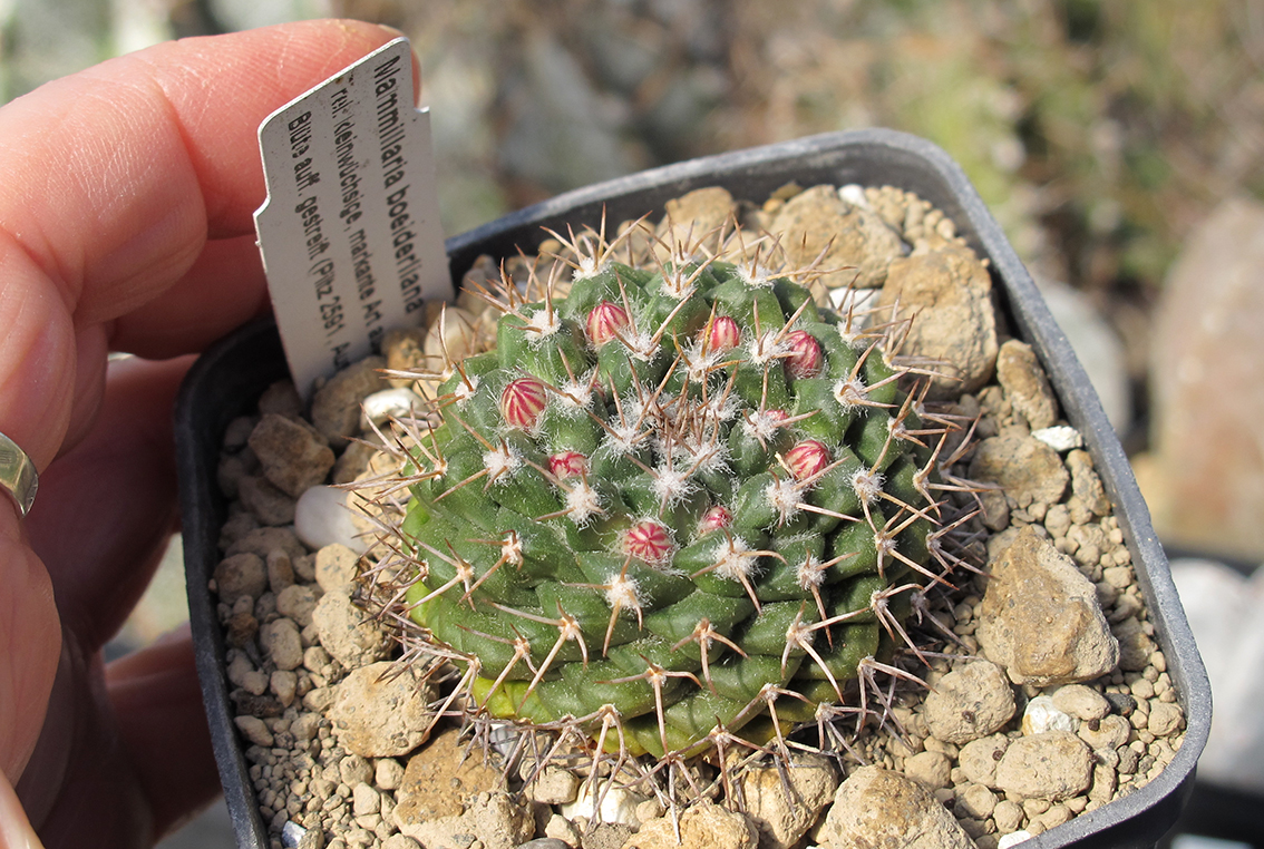 Das frühlingshafte Wetter der letzten Tage lockt in der Kakteensammlung erste Knospen hervor, die baldigen Blütensegen verheißen. Mittlerweile kenne ich die frühen Gesellen unter meinen Pflanzen, die zuverlässig ihre Knospen schieben. Ganz auf's Blühen versessen scheint diese kleine Mammillaria. So viele Knospen...
